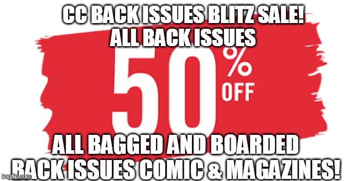 50% OFF ALL BACK ISSUES BLITZ! ALL B&B BACK ISSUES ONE DAY ONLY WED. 11/6/24 50% OFF ALL BAGGED & BOARDED BACK ISSUES, NO DATE OR PRINCE LIMITS or EXCEPTIONS.
