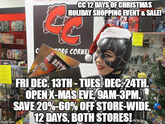 25% OFF Nearly ALL *MERCHANDISE INCLUDES Action Figures, Bagged & Boarded Back Issues, Books, Funko POPS, Statues, Posters, Plush, T-Shirts, Toys, Role Playing Games, Board Games, Video Games, LPS, DVDS, VHS - Not Dated on Priced Sticker in the Month of NOVEMBER/DECEMBER 2024.