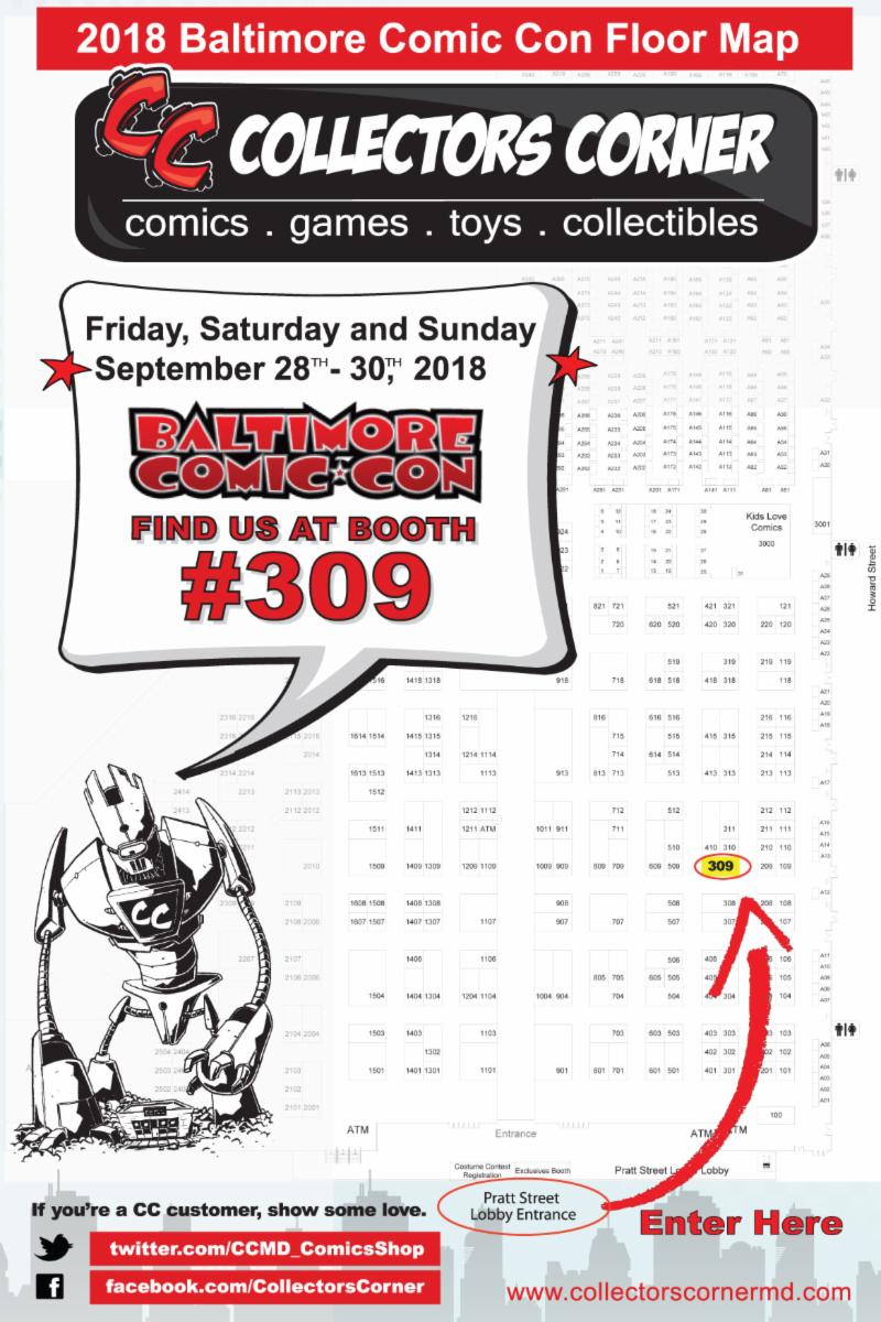 Plus SAVE with BCC Weekend Store-wide Sales at All 3 Collectors Corner Locations! Visit the Closest Comic Book Store to the Baltimore Comic Con while you are in town.