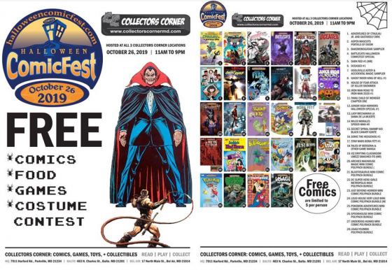 CC HALLOWEEN COMICFEST Saturday October 26th, 11:00 AM to 9:00 PM ALL 3 Collectors Corner Store Locations.