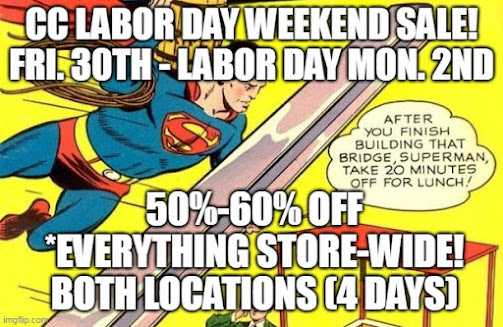 CC LABOR DAY WEEKEND SALE! 50%-60% OFF *EVERYTHING! (8/30-9/2) OPEN REGULAR HOURS - LABOR DAY! *50%-60% Off *EVERYTHING, Store-wide!