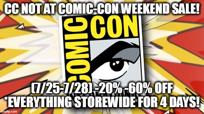 CC NOT AT COMIC CON (SDCC) WEEKEND SALE! 20-60% Off *EVERYTHING STOREWIDE! 4 Days, Thursday 7/25 - Sunday 7/28.