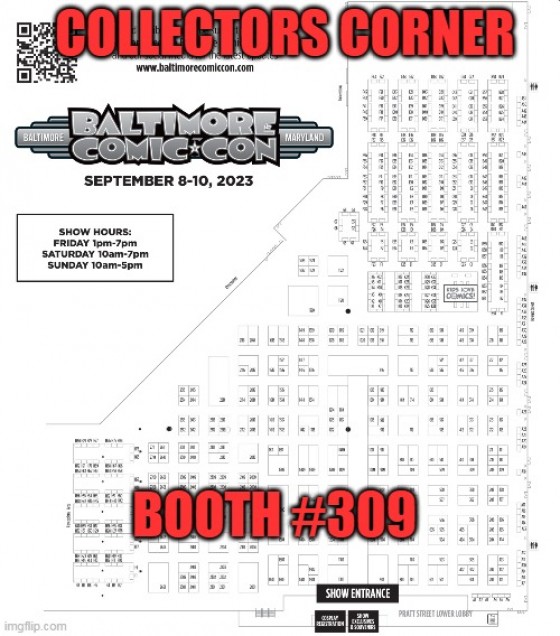 BCC/CC Booth #309 - Collectors Corner @ Baltimore ComicCon (9/8-9/10) 2023